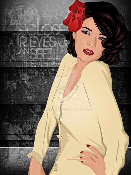 wow that's really quite nice. her eyes look a little odd to me, can't say how but the stading, colour and hair and so much more it really quite lovely!