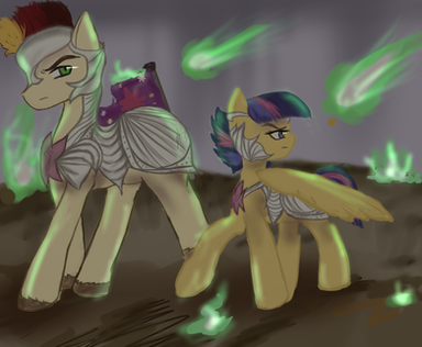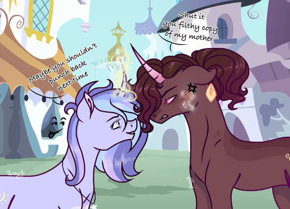 The sun beat down hard on the two mares out in the open, a silver unicorn freely trotting through an open green field as she was catching up to a small brown mare. Who was panting like a dog from the laps she had already run throughout the day, they both had been out all day in the summer sun which made a lot of local’s curse Celestia for the dreadful heat. Opal had suggested going out and training as Whiplash had been bothering her for days for a full day of training her stamina and speed. She wanted, needed to catch up to the flying pagasi, it was her goal and she was going to achieve it no matter how much physical pain she had to go through. Originally, Opal had raised an eyebrow at the idea but after a while agreed, proud of her ambition but not seeing the harm it was really doing the wanted Pegasus.