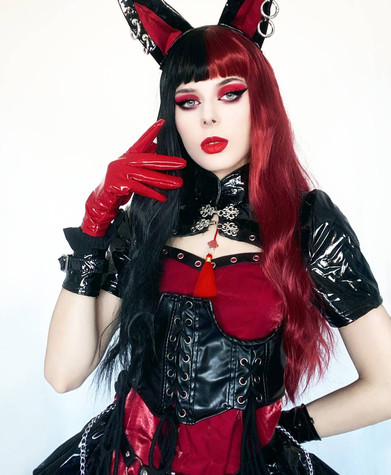 #alternativemodel #black #dark #dc #fashion #goth #gothic #harley #harleyquinn #hears #latex #leather #marvel #model #ponytail #queen #red #shiny #vinyl #valentinesday