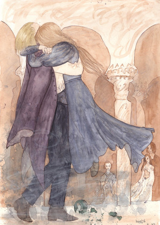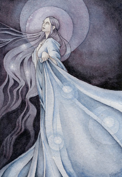 Done with watercolour, white gouache and indigo ink.