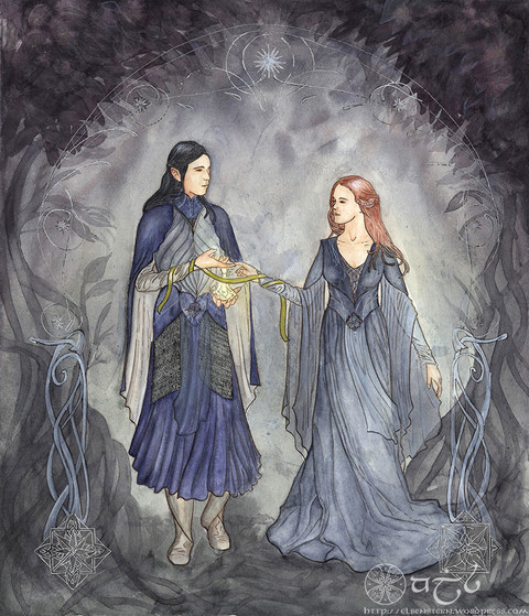 Iriën Almariël Edaindil from Taure Lindornea.This is actually something I didn't think about but just started, inspired by Art Nouveau and Mucha, scribbling.