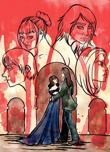 Done with watercolour, ink and pastels.
