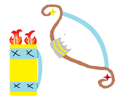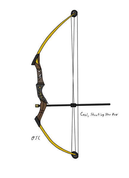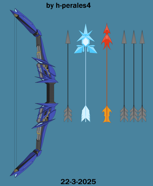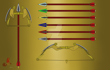 Coincidentally, I have (at least) two OCs that carry weapons on them, those being Daisy, whose ice spear can be seen on the left; and Samantha, whose dragon bow is pictured on the right with a fire arrow equipped. I'm working on a design change for Iris' water gun, so I didn't include it here.