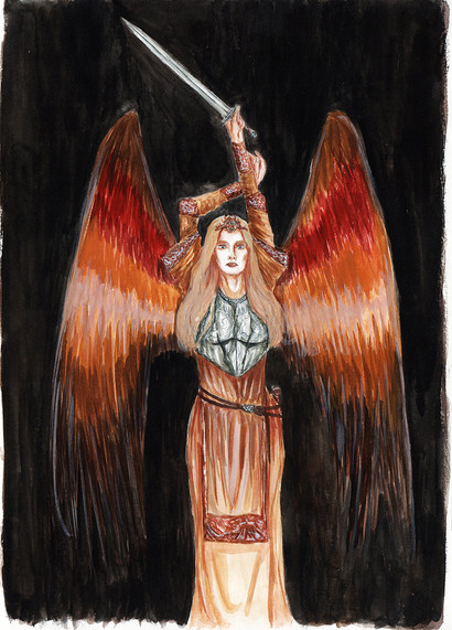 St. RaphaelMaterials: Watercolor paper (9x12 in.); pencil; black, gold, and silver ink; watercolors; white acrylics