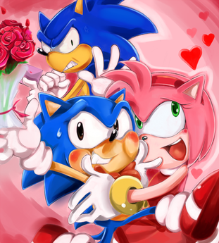 This picture is both sad, and kind of cute... but more sad for me. It's like this is as close as Amy can get to being with Sonic, when she knows it probably won't happen for real...