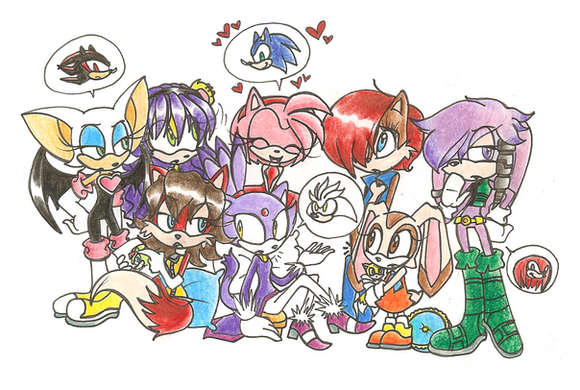 lol tails, knuckles, amy and shadow. lol XD Shadows like: im gonna take a nap while you carry me.