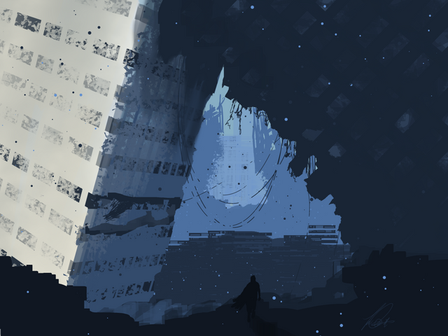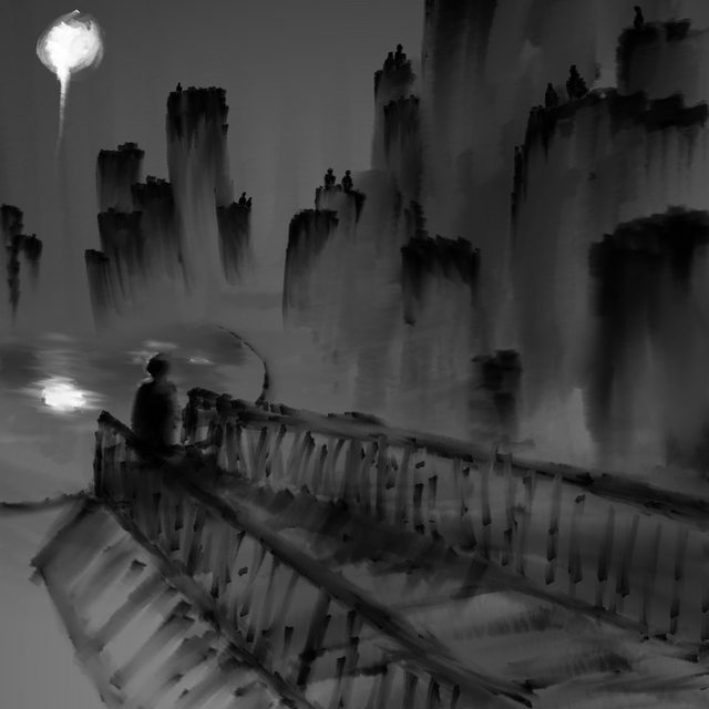 Love the 'rough' painting style, really adds to the mysterious feel. Great piece!