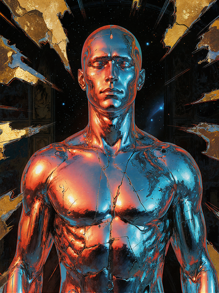 #horror #surreal #acrylic #airbrush #bald #broken #cold #cracks #cross #dark #deep #depression #emotion #fractures #frost #frozen #grief #legged #man #monochrome #muscles #pain #psyche #sad #skin #snow #stars #thoughtful #art