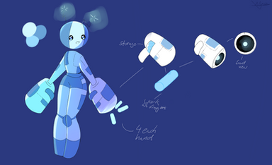 A little baby bot, created to take care of children. Has a variety of functions, like store stuff in his head, use his face as a TV, etc.I'll be showing more robot OC's in the future ;D