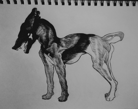 #blood #bodyhorror #creepy #dark #darkart #darksurrealism #death #disturbing #dog #drawing #horror #hound #hounded #pinkpaper #puppy #skinny #spikes #starfish #surreal #traditionalart #weird #apelure #no_ai #coloredpencil #coloredpencils