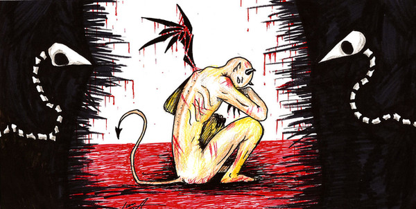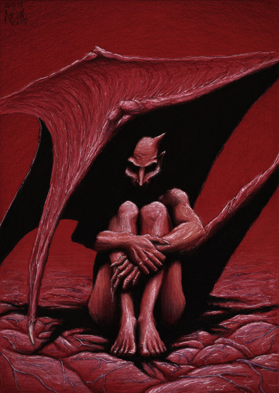 #abyss #demon #devil #evil #hell #hellish #horns #infernal #occult #redpaper #satan #apelure #traditionalart