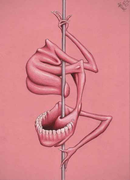 Colored pencils, markers and white pen on red A4 paper.Related content