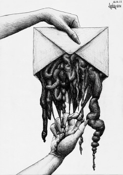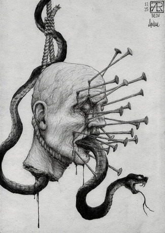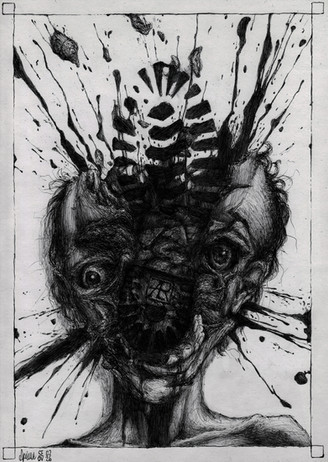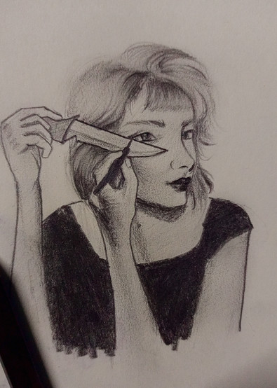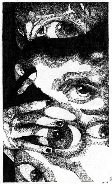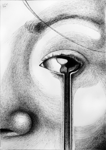 #dark #face #girl #hand #ink #pen #vision #apelure #ballpointpen #blackandwhite