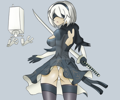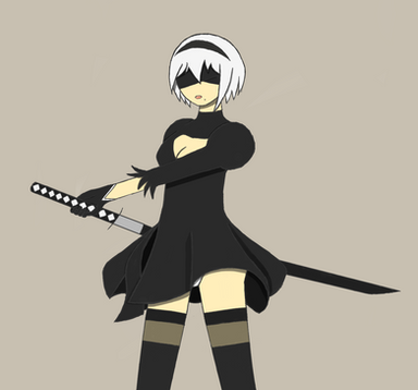 #2b #digital #drawing #fan_art #pod #sword #anime #blindfold #dress #fanartdigital #mask #pantyshot #white_hair #thigh_high_boots #thigh_highs #nier_automata #nierautomata #yorha_type_2b #yorhatype2b #nierautomata2b #nierautomatafanart