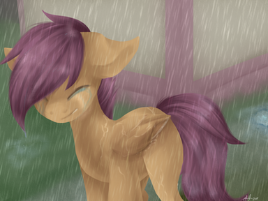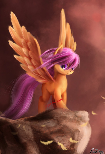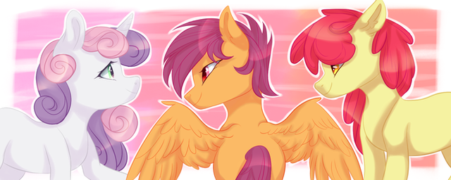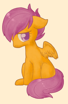 Very unique, but still very definitely Scoots! Having the others in the background was a nice touch, though it's a bit hard to tell that's Apple Bloom in the far back. But Sweetie Belle's definite.