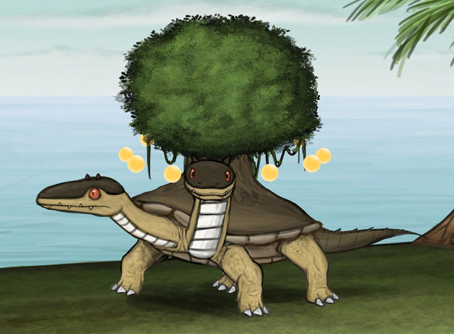 The idea behind this create is it is able to regenerate. But unlike other regenerating creatures like trolls, geckos or saurians it is able to regenerate even the worst damage and in some cases even if its dead. To make that possible an part of his body is dedicated only to control this regeneration, in this area, which is inside the shell, are saved genetical informations, some parts of the long-term memory as well as a big amount of fat to store energy.