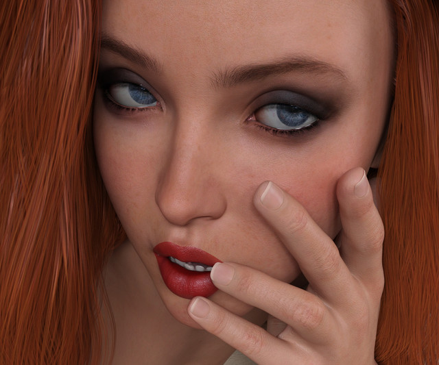 Oh my lord... THIS!!! This is awesome! You know what I can't get over? The way you've posed her mouth so that it is's being dragged up by her fist; it's such a natural detailand looks SO authentic. And look at the interest you've added to her right hand with that clever use of lighting, along with how well her hair is interacting with her finger. I'm really impressed by this, great work!