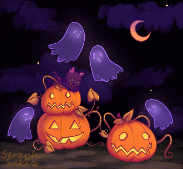 Chasing fall magic! If cats can see ghosts then dragons probably can too o_oMobile WALLPAPER size is available on my Patreon!