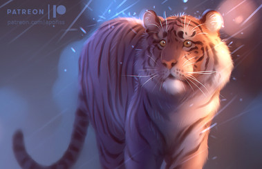 one more finished work with big wild cat theme! wip image and vertical version on my instagram .Full HD WALLPAPER version is available on my Patreon!
