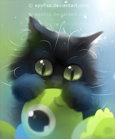 this one is gotta be my favorite of them all, it's like a mixture of my cat and my sister, haha because she has this frog hat and she loves frogs too, and my cat is black and cute as your painting.