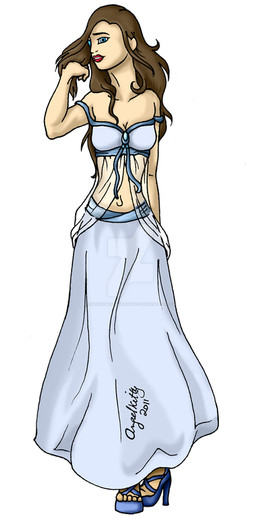 She looks a little dodgy, but she was more or less another experiment in shading techniques. I need to get better at folding. Her hair is a little stupidly colored, but thats because I went crazing with the spudging because her hair just looked stiff and not flowy, because Valenti is all perfect and crap.