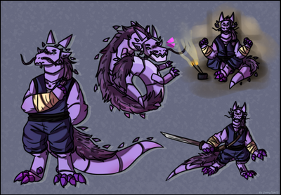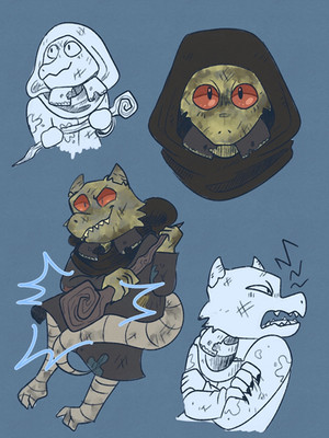 well since I drew Zig in the "doing 3 things/ 3 poses" format last time I guess it makes sense that I'd do the same for my other Kobold characters ^^ in this piece its Kale my Kobold Rogue.
