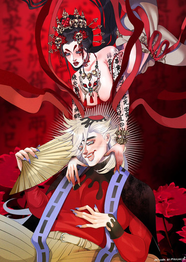 Personal piece of my oc; Marcella w. Gyomei, the babe, from Kimetsu no yaiba <33 hope u like!!