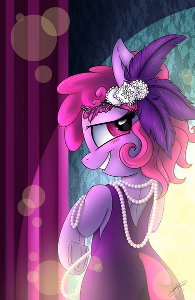 Hey Apple, it's Neon. Now that I get to see your drawing in full glory, I have to say is very well done. It's kind of surprising yet interesting to see the slightly shy and kindhearted Coco Pommel to be so outgoing and even prideful in this art piece. But since I like her, I think it's fine to see her behaving this way. After all, I am someone who likes new things. But I have read the Great Gatsby as well, so it's good to see something related to it in pony form. The drawing itself is grand with it's shading and coloring. Solid work overall.