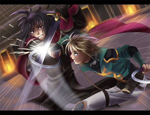 ||| Β We're both real. You and I are two different people!Did this today for Day 29 of my Tales of Art Challenge! The prompt was favorite game plot, of which Tales of the Abyss wins for me by a landslide. I'll also likely soon have this available as a print, too! <: