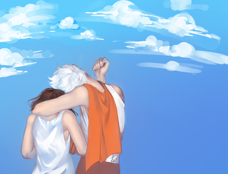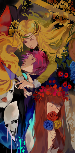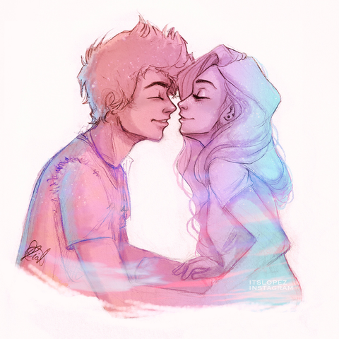 Kind of looks like Jack Frost from Rise of the Guardians and Rapunzel from Tangled. Love the colors, it looks amazing <3