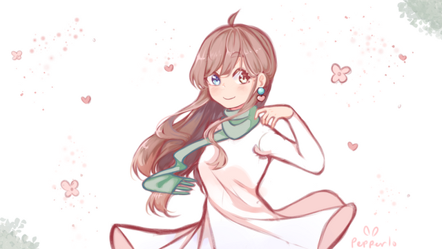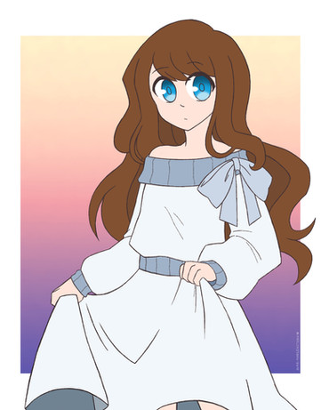 the coloring and the drawing are all so nice... the texture of the colors are very much pastel which makes it very much pleasing and calming to the eye...the dress is also nicely done while the lineart is so thin but quite clean X3 the addiction of highlights is also very well placed... love this X3