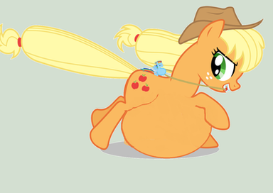 *Pants feeling her arms tired of rubbing her gurgling tummy which is much less round and big than before* Ah'... Ah'm tired pardner... *Urp!* Let mah stomach do the rest... *Giggles softly* Not that much to work on ya' anyways