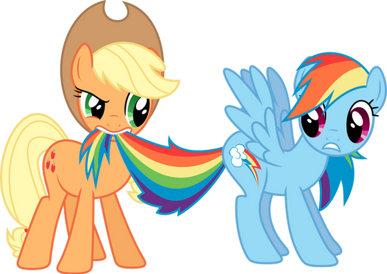 Dashie challenged me against her ta eat a filly the faster Ah' could, so we catched these two fillies and eat 'em! The bet was if Ah' won she would take me ta fly... *Sighs* Ya' win this time Dashie...-