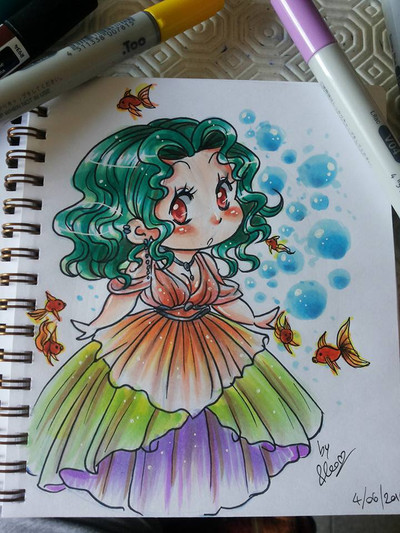 Hello to everyone! I used a wonderful reference that I found on pinterest for drawing this kawaii chibi !Media used: copic ciao and tiger markers! Hope u like it!! bye!!!