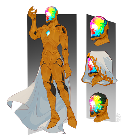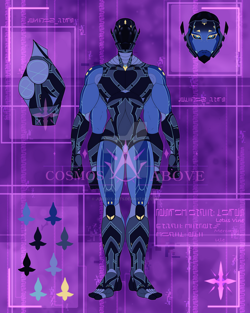 First attempt at conceptualizing a custom skin for a Warframe, I went with Lavos because he's been my main for most of my Warframe journey (started playing in early 2021). I wanted to do something sort of celestial/ethereal. This is genuinely just an exercise, both to practice my skills and have fun brainstorming skin ideas, so I didn't really obsess over whether these designs fit the typical parameters for cosmetics in game. The color palette being very Orokin was actually unintentional, but I prefer this one over some of the other colors I played with.I think my favorite part of this design is the helmet.