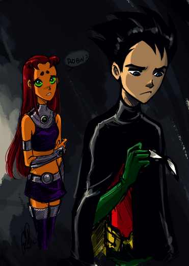 I luv Robin!!! He's my fave guy charrie in Teen Titans 8D and Starfire's mah favorite girl 8D