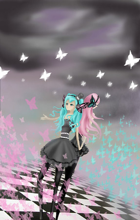 so, there's 2 butterflies there, and the one with merli is decaying (if you noticed) also, that's what i mean by "evil"