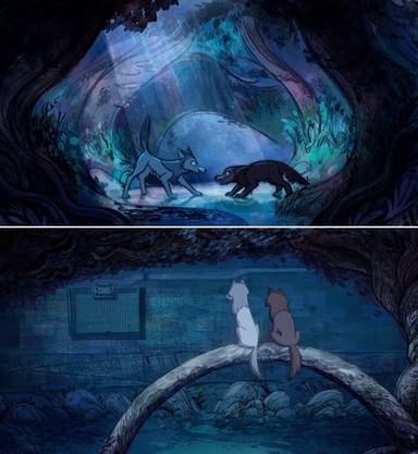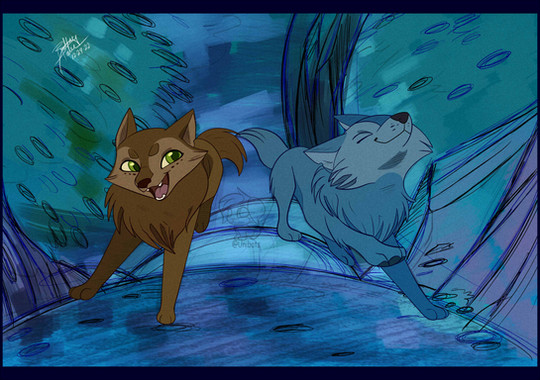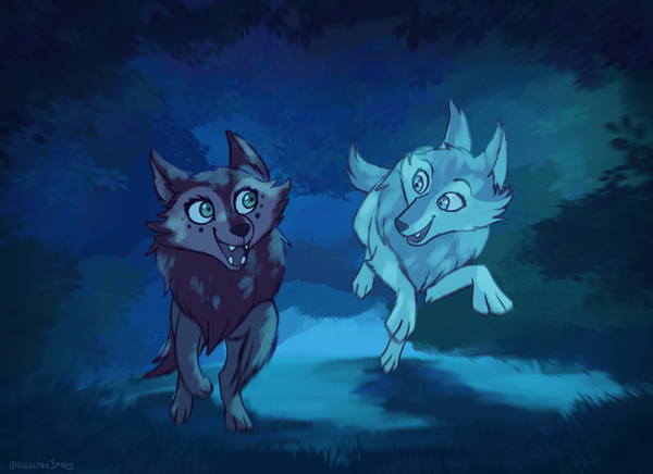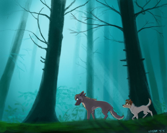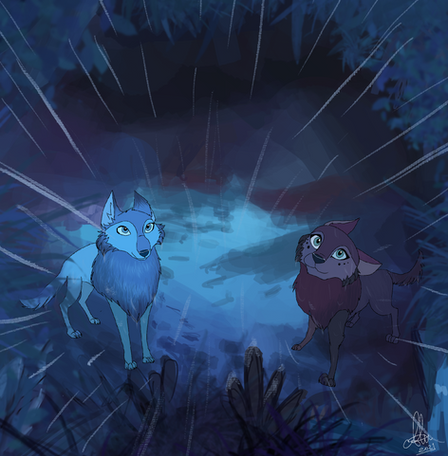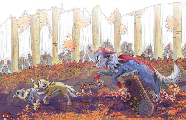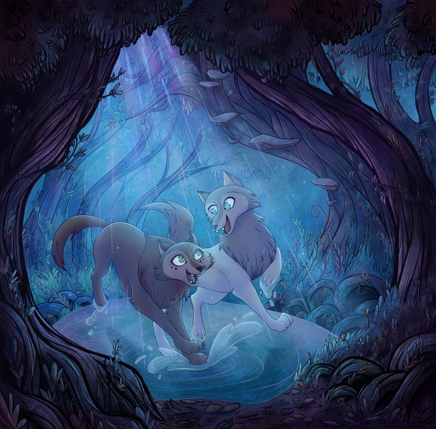 #dark #darkforest #fan #fanart #forest #mushroom #mushrooms #play #playing #pool #puddle #run #running #splash #splashing #walkers #wolf #wolves #mushroomforest #runningwiththewolves #wolfwalkers #art