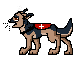 In the Astrolabe game the only person who owns a dog is Ember, as she has some kind of disability you'll eventually figure out as the player. This is her Shiloh shepherd. He never leaves Ember's side and may even accompany her to other planets. He carries a pack over his back warning others that he is a service animal as well as pockets for medical supplies and anything else that Ember may need.