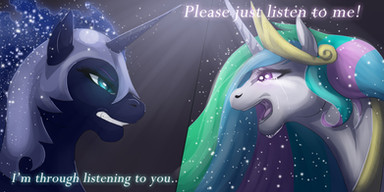 Anyone with a sister will understand. But I have 3 younger ones XDFor my sister for Christmas. I'm going to put it on a tshirt for her. Princess Luna and Princess Celestia.