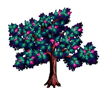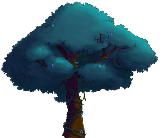 The other problems I was running into when I loaded it in game was that the game wasn't handling my semi transparent pixels so it just looked like a huge blob, it didn't have that pretty gradient I made with the leaves. I also had to remove the lighting from the tree because the game has its own physics, so as the program changes it from night to day, it changes the colours of things. And well, let's just say a tree with bright yellow highlights looked super odd at night time. Even if I used the other one, I would have to remove the shading so the real comparison actually ends up being between these two images: