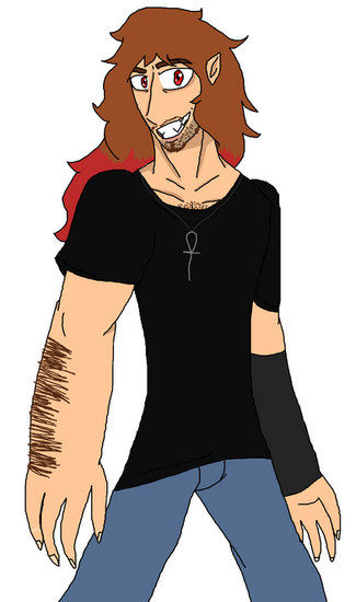 and i made this guy yesterday, originally he was gonna be a 1 off werewolf bounty hunter, but then I chose to reincorporate Luger Rannulf(a previous werewolf) and Luger's the Great Great Great Grandfather of Ray, and Ray's a lycan who is also a bounty hunter.