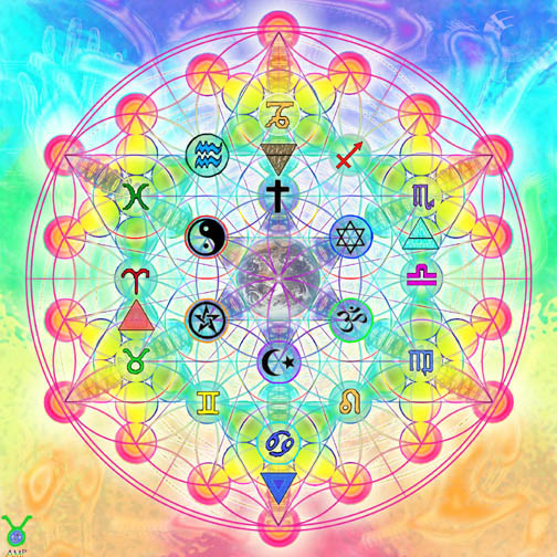 God StarThis picture has a variety of symbols that represent life/reality/divinity. In the back (black and yellow colors) is the Enochian Star, which represents Magick. Magick is causing change in conformity with one’s will. On top of that is the Flower of Life (the pattern with the overlaying circles). This is the pattern of creation. It can be found in everything all the way down to the molecular level up to the universal level. Atop that is Metatron’s Cube (the almost liquid looking geometric figure). This is formed out of the Flower of Life. It is one of the basic creation patterns of existence. It is one of the most important information systems in the universe. On top of that is the Tree of Life (the 10 circles), which is the path to divinity. Finally, on top of that is the spiral. The spiral can be found throughout all life as well. Just look anywhere in nature and you’ll see it.