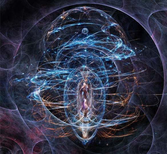 This work encompasses many ideas. It is an attempt to capture many of the metaphysical/new age/occult/spiritual concepts. I have connected this piece with the song from the band Tool entitled “Lateralus” since that is the only song I have yet to hear that does such an excellent job of bringing together all of the metaphysical/new age/occult/spiritual concepts. In this work the human is shown as the divine being that it truly is. The 7 major charkas are shown going up through the spinal cord (Prana tube). The charkas are energy centers. There are minor other minor ones all throughout the body. When a chakra is unhealthy (closed or just barely spinning) this can cause physical, emotional, or mental problems in certain areas that are connected with that chakra. A chakra can be reopened with meditation or by someone who was the healing capabilities to do so. I have begun doing this, and so far have healed 4 people. Life energy, or prana, comes in from the crown chakra (top of head) and flows down through each chakra allowing you to live. From the root charka ( #1, in red at the bottom) extends the grounding cord. This cord extends to the center of the Earth, where it is then wrapped around the white light ball that lies there. This helps to keep the spiritualists grounded when leaving their body during meditations. The planets around her head show how they effect us from birth (the study of Astrology). Our personalities are created by the alignment of all of the planets at our birth as well as the experiences we have throughout our life. The planets and stars are constantly sending large amounts of their energies towards us affecting us in every way. The Leo symbol on the sun has two purposes. One is that the model for this is a Leo, and the other purpose is that Leo is ruled by the sun and represents self-consciousness or human awareness (Alice Bailey). The Taurus symbol at the bottom represents the artist (I am a Taurus) as well as that Taurus is the earthiest sign. The large crosses coming up from the Earth represent Christ Consciousness, or the fact that we are all sons and daughters of “god”. The spirals coming from those represent the pattern of growth found in all things. This can be seen from the atomic level, up to the universal level. Look up Fibanocci sequence. The energies around her body show the aura. Everyone has an aura around them, which is made up of a mix of the energies they are giving off and the energies they are receiving. The earth also has an aura as well. There is much, much, much more to this…a lot of which is hard to completely explain in a few words. Again, all of that is shown in this picture is connected with each other, for all that is is ONE. Also, all these ideas are being proved more and more by science. I’d more than happy to answer any questions about any of this. This song is my all time favorite song. Every time I hear it I feel healed, inspired, enlightened, uplifted, and so much more. Here are the lyrics from the song “Lateralus”. I wish I could include the music with it, for that is just as important as the words:Black then white are all I see in my infancy.
