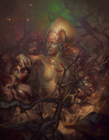 Holimoli this is absolutely amazing! *0* Congrats on the DD! I cannot express how amazing this is! She looks so pure and surrounded by those detailed objects is incredible. Her skin has such a vivid contrast against darker background. I also really love how the eyes stand out so strong, as if they are radiating light.