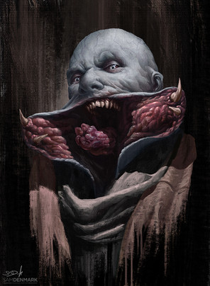 The entire piece is amazing but, I can't decide if it is the grotesque, oozing mouth or the hollow, abandoned eyes that is/are my favorite element(s). Very well done!