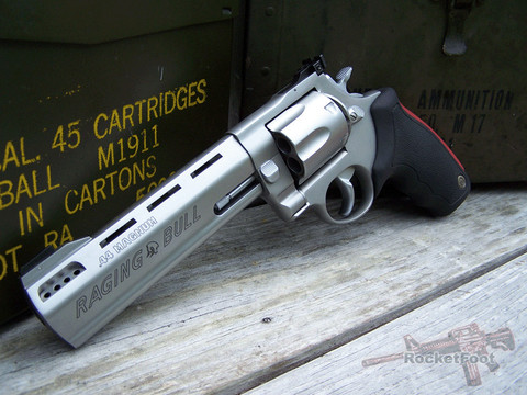 This is my first and at the moment only revolver in my firearm collection. It's a Taurus Raging Bull chambered in Smith & Wesson 500 Magnum.I love the lines on it and the overall look but it's a heavy, heavy revolver. The dollar in the picture was there just to illustrate size; this thing makes the Desert Eagle look tiny.