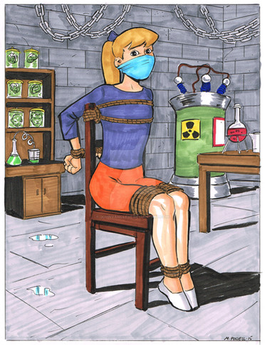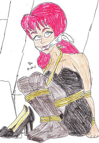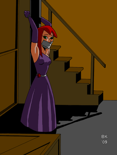 This is just elegant (Marilyn in 7 year itch)! Love the gag, the minimalist bondage, her plaintive expression (clearly she's looking at her Captor and begging for mercy with her eyes), the little black dress (Your variation in costumes and attention to their detail makes the Art so real!) and last but not least, the hint of eyelash that makes her even prettier. She's the fantasy me i love to picture in bondage....love, becca