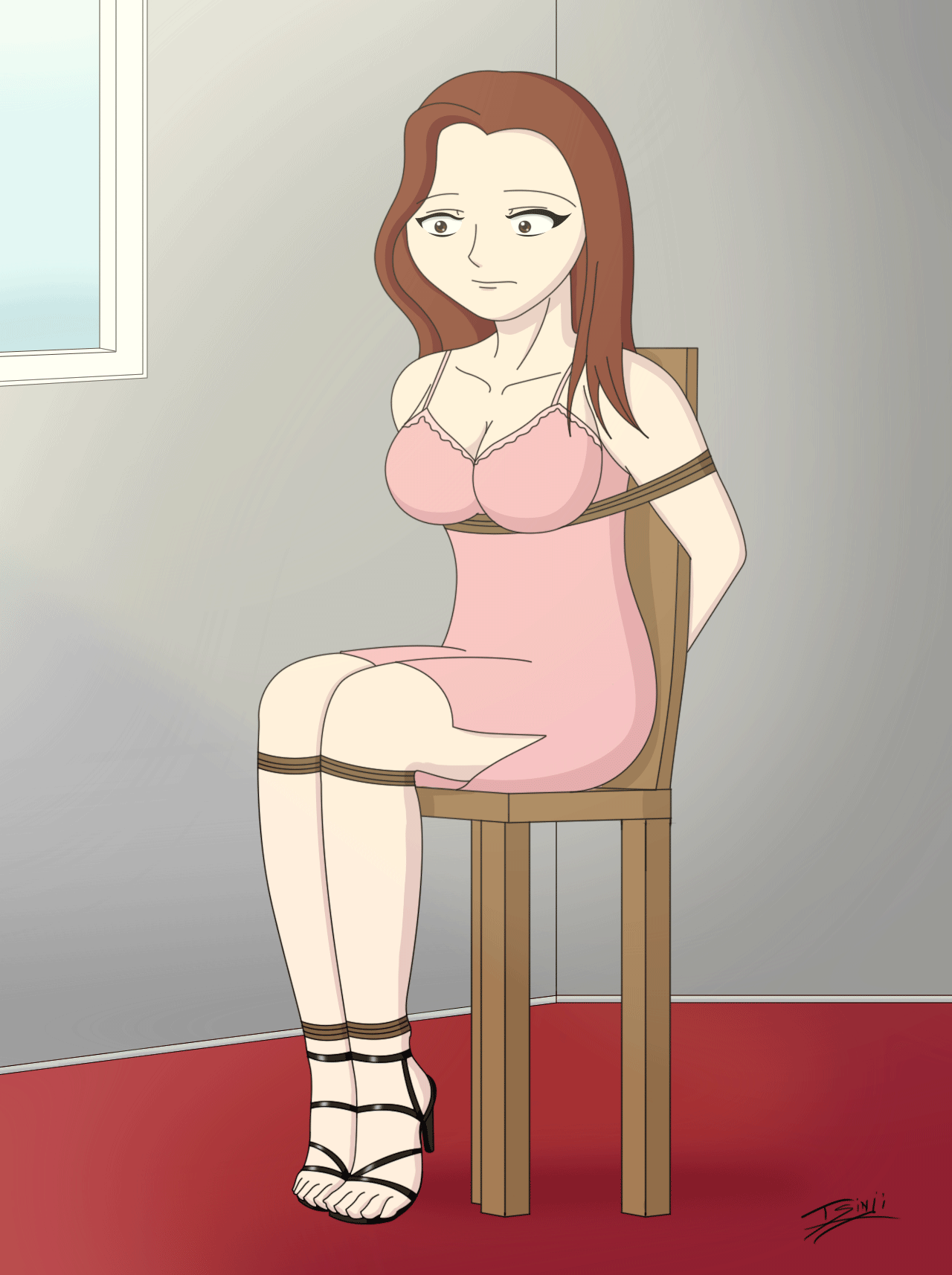 And I love her dress! And her gag. And the way you tied her up
