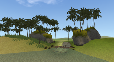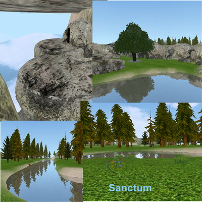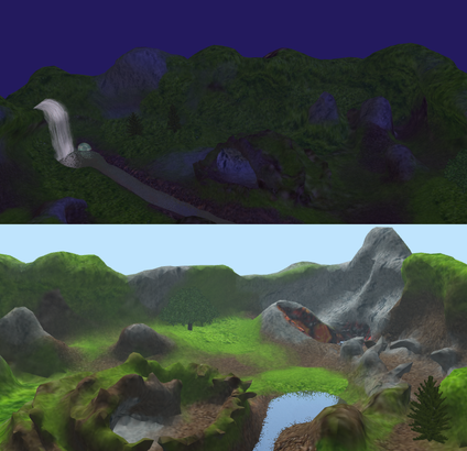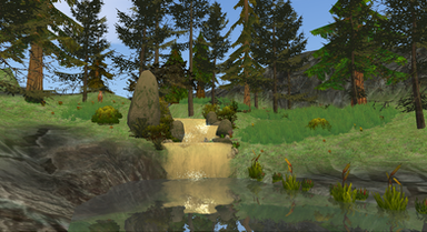 Top Image: the veiw from the falls. I added more reeds and rocks around the sore.
